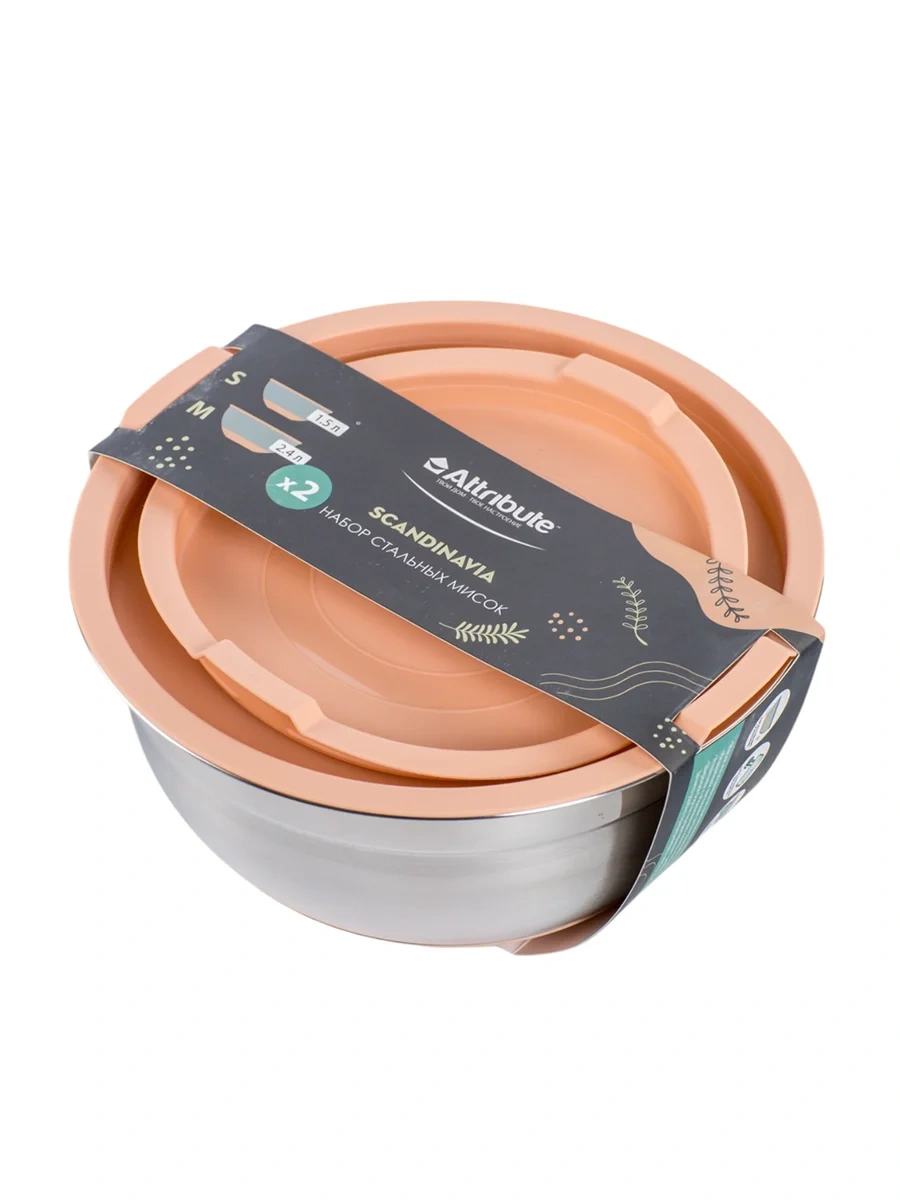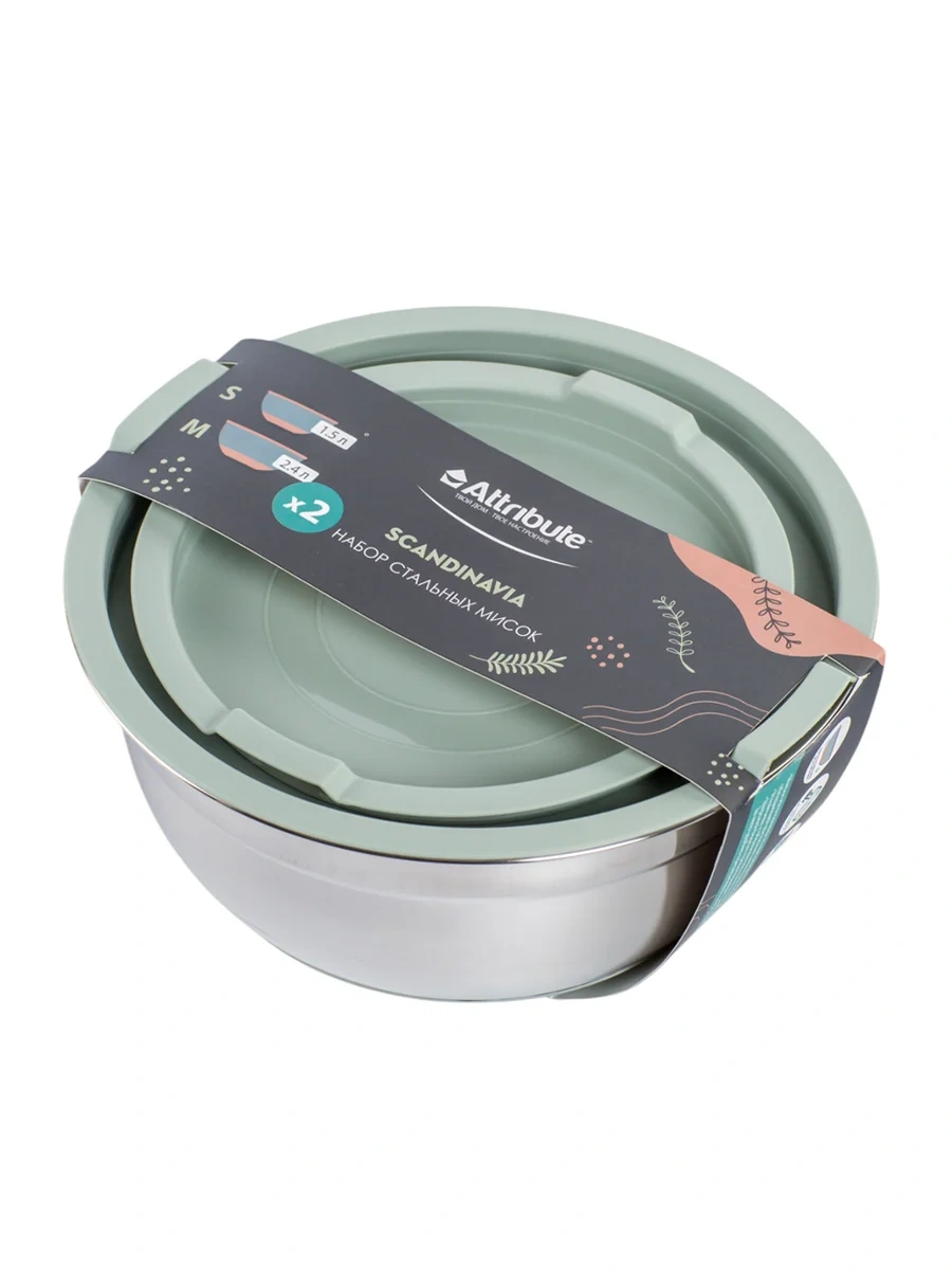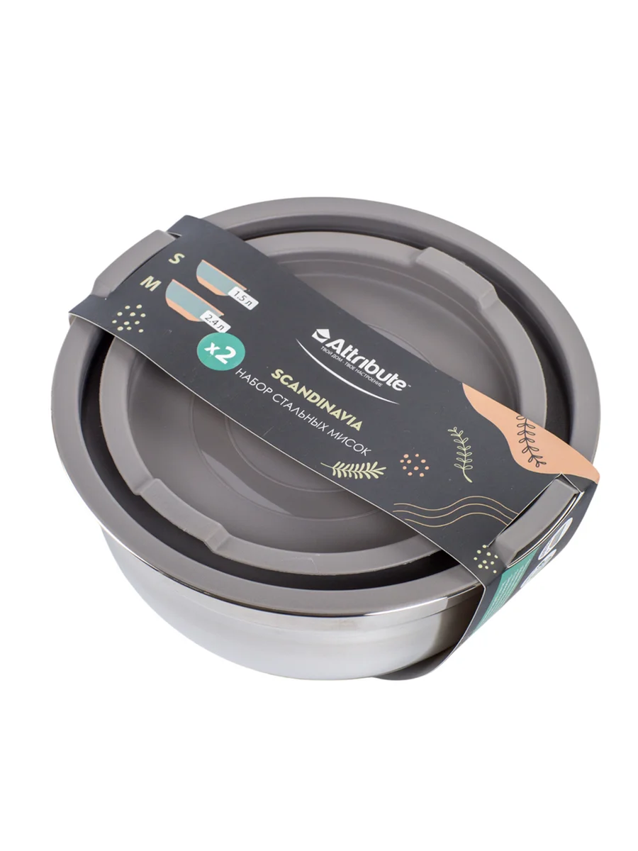 Набор мисок Attribute Scandinavia с крышками 1.5л + 2.4л