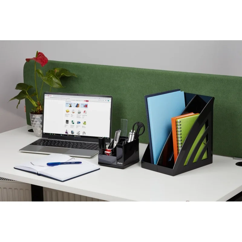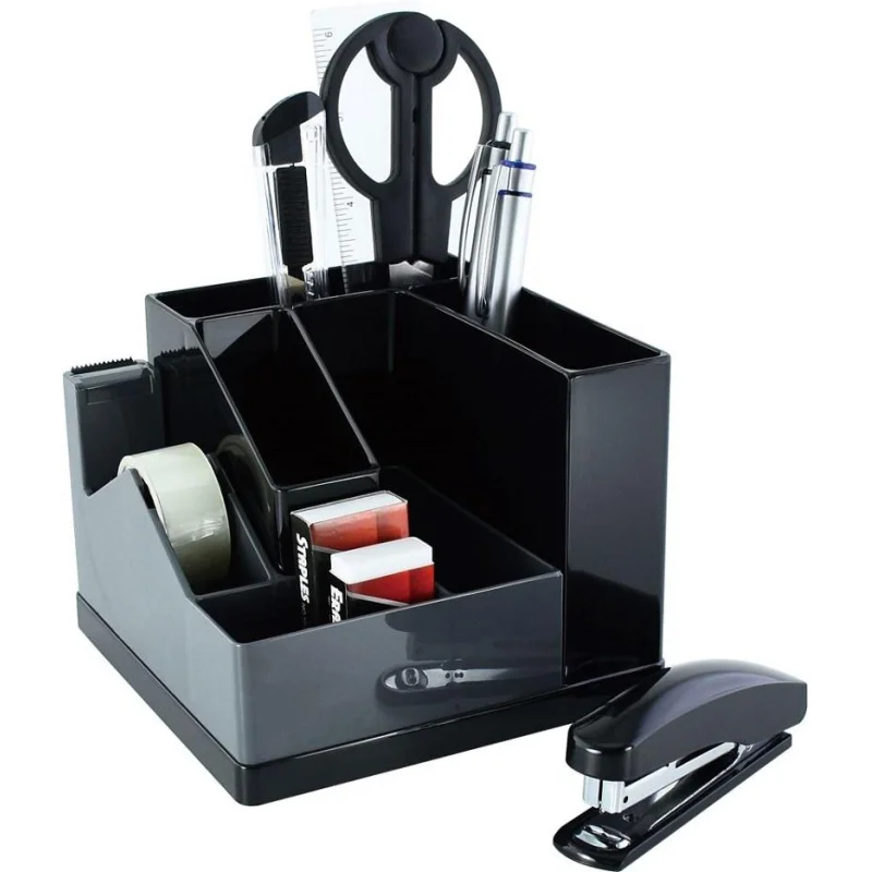 Отличное решение для рабочего стола. Подставка занимает минимум места и вмещает в себя все нужны канцелярские мелочи для работы. Имеет вращающуюся на 360 градусов основу.
