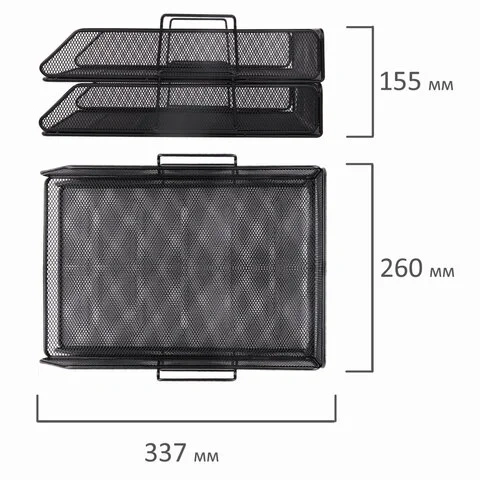 У всех подставок в наборе имеются мягкие подушечки на дне, предотвращающие скольжение и не царапающие мебель. Предметы изготовлены из металлической сетки, выполнены в лаконичном черном цвете.