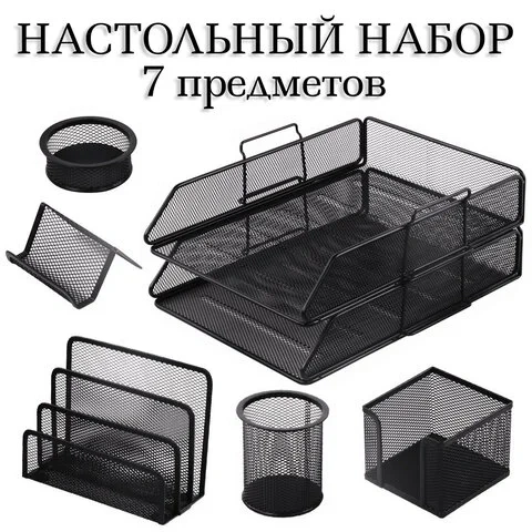 Набор настольный Brauberg Germanium 7 предметов, черный металл, 231962