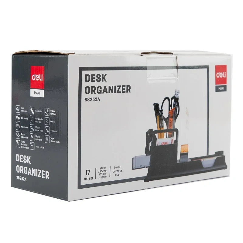 Изготовлена из легкой металлической сетки серебристого цвета. Занимает немного места на рабочем столе и помогает поддерживать порядок. Размер: 60x95x52 мм.