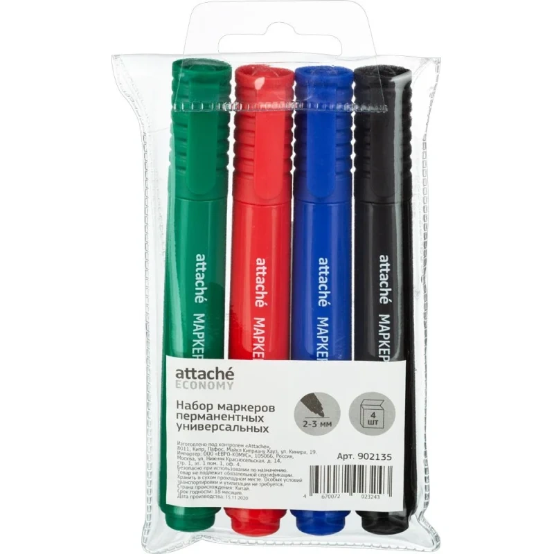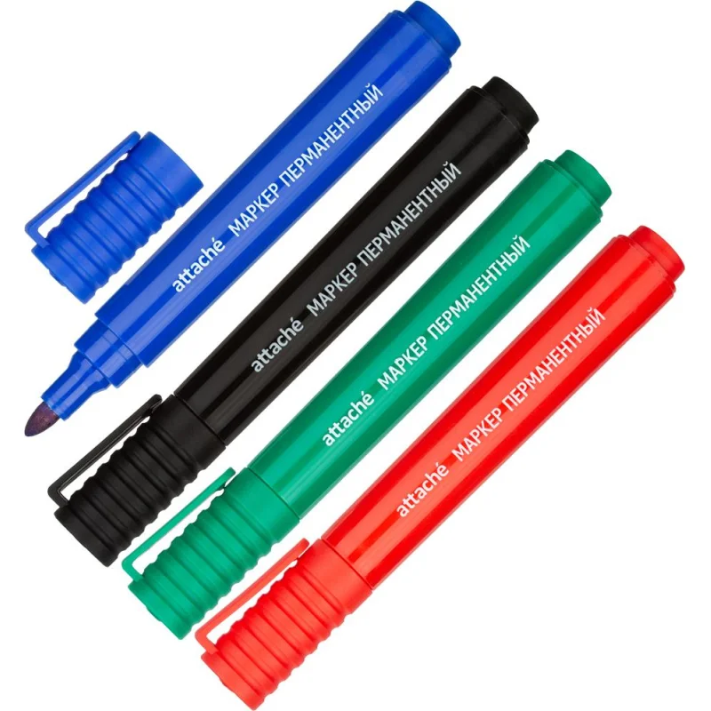 Набор перманентных маркеров Attache 4 цвета, 2-3мм,