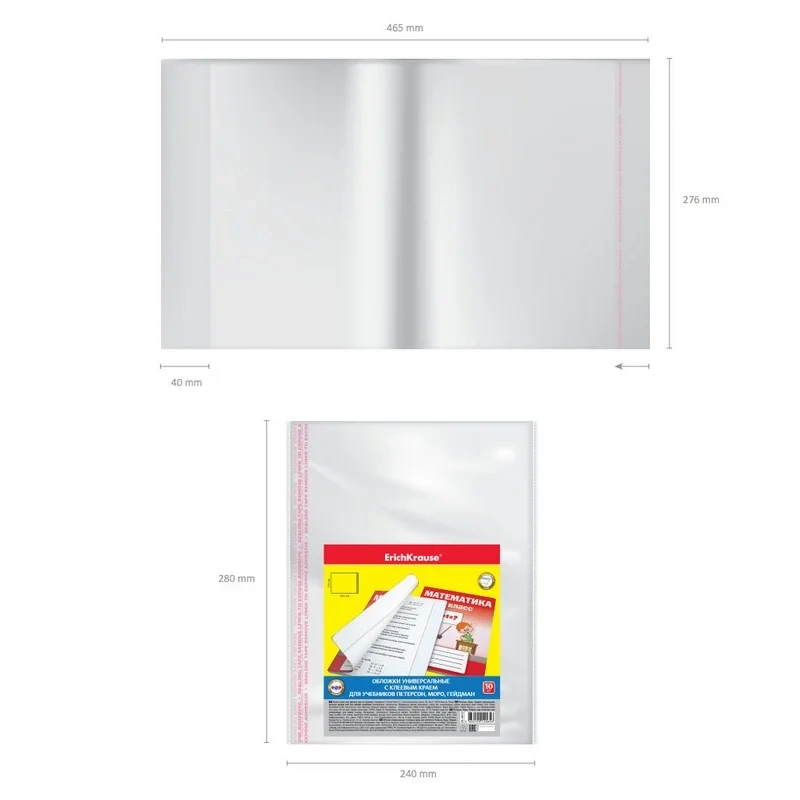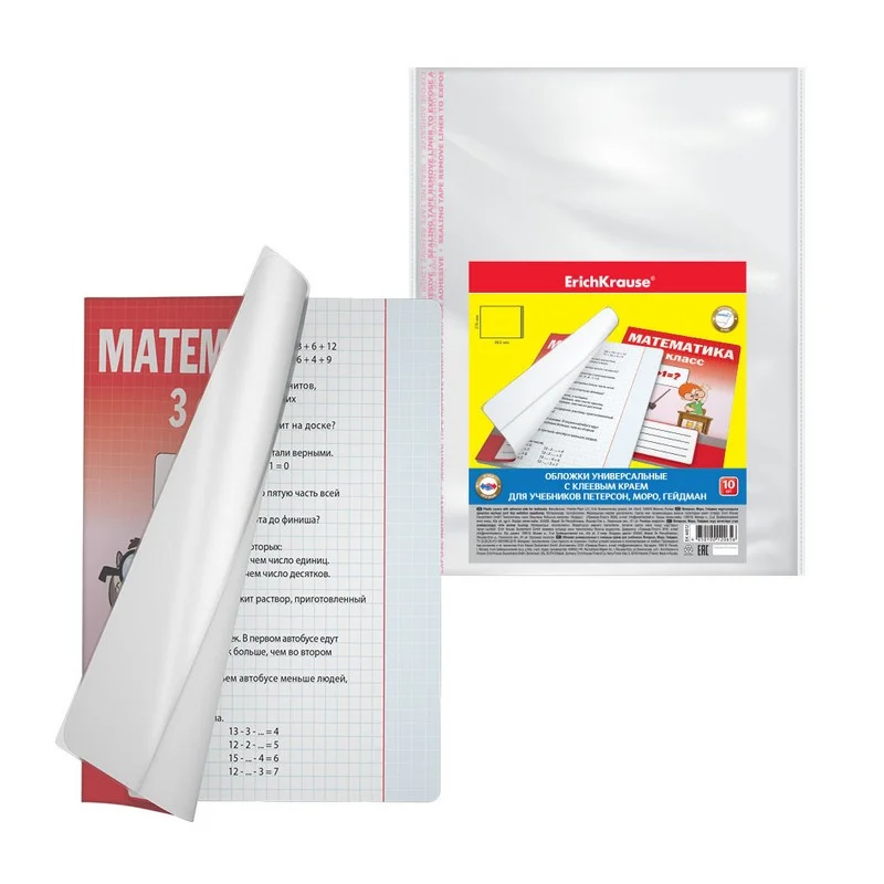 Набор пластиковых обложек ErichKrause Fizzy Clear для учебников Петерсон, Моро, Гейдман, с клеевым к