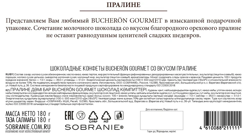 В сладком подарке вы найдете 8 кондитерских изделий: