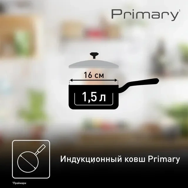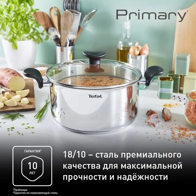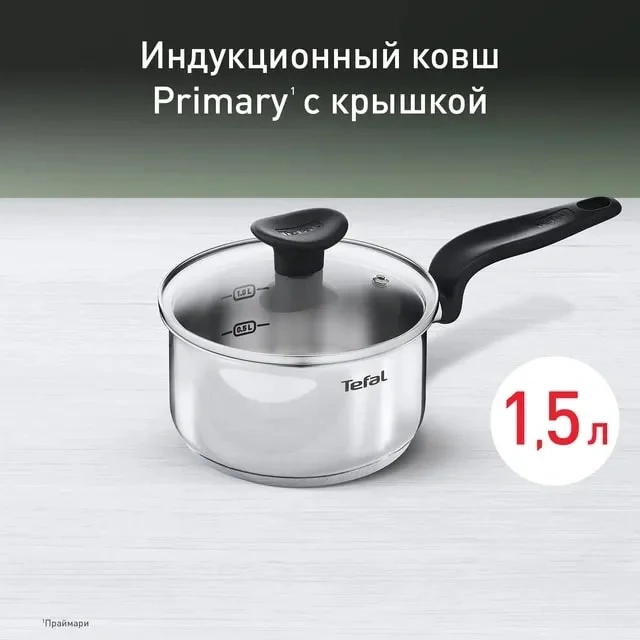 Набор посуды Tefal Primary кастрюля и ковш с крышками нержавеющая сталь индукция, 4 предмета