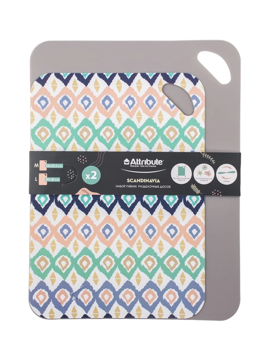 Набор досок разделочных Attribute Scandinavia включает две гибкие доски, выполненные из полипропилена и ЭВА, что обеспечивает их прочность и долговечность. Прямоугольная форма с размерами 380х290мм делает их удобными для использования на кухне, а серый цвет добавляет стильный акцент. Гибкость досок позволяет легко переносить нарезанные продукты, а наличие отверстия упрощает хранение, позволяя подвешивать их на крючок. Легкий вес в 0.146кг делает их удобными для ежедневного использования. Эти доски станут практичным дополнением к кухонному инвентарю, обеспечивая комфорт и удобство в процессе приготовления пищи. Доски изготовлены из высококачественного пластика, который не впитывает запахи и легко моется. Они имеют удобную форму и размер, что позволяет использовать их для различных видов продуктов. Благодаря гибкости доски легко сворачиваются в рулон, что упрощает их хранение.