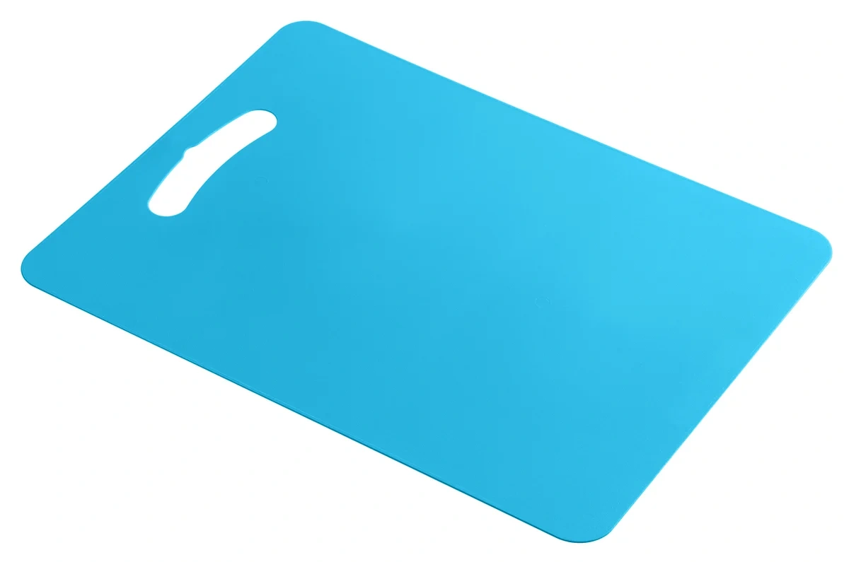 Разделочная доска лёгкая, удобная и станет удачным приобретением для любой кухни. Матовая поверхность не даёт скользить доске и нарезаемым продуктам. Обе стороны являются рабочими, что продлевает срок службы изделия. Доски прекрасно сочетаются, а также комфортны в хранении: удобный вырез позволяет вешать на все типы крючков. Гибкость доски позволяет с лёгкостью ссыпать нарезанное в миску. Малый вес и компактность делают доску отличным выбором для любой хозяйки. Доска формата А4 идеально подойдёт для обычного использования. Доска легко моется, изготовлена из безопасного материала.
