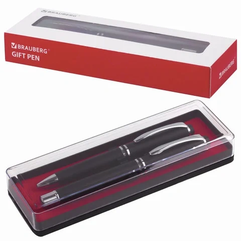 Набор ручек бизнес-класса BRAUBERG Duetto, СИНИЕ, 2 шт: шариковая, перьевая, черный с хромированными