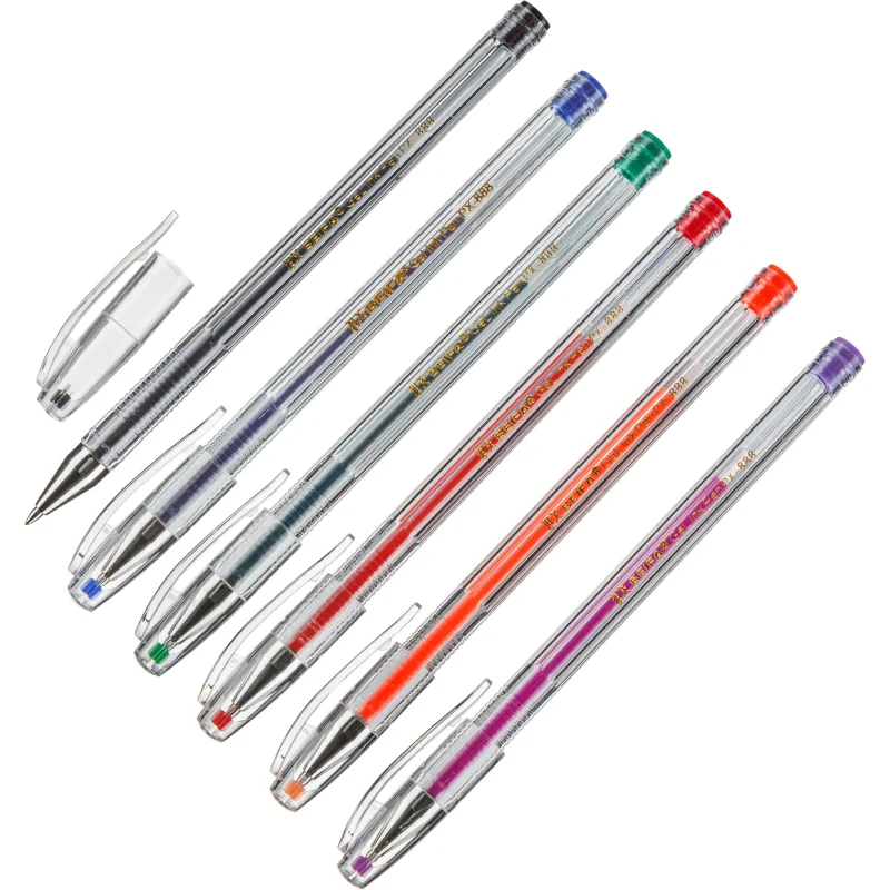 Набор гелевых ручек PVC в мягкой упаковке, 6 ярких цветов. Корпуса пластиковые прозрачные. Ручки обеспечивают легкое и мягкое письмо, насыщенные линии толщиной 0,5 мм. Чернила быстро высыхают, не размазываются. Расходные материалы для данной ручки не представлены в ассортименте производителя и в ассортименте компании Комус.