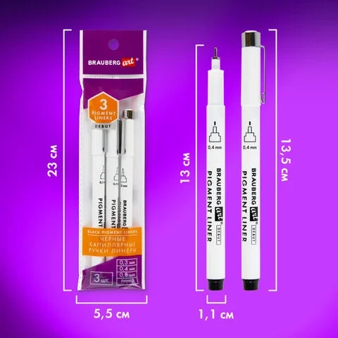 Набор ручек капиллярных Brauberg ART DEBUT черные, 0.3/0.4/0.8мм, 3шт/уп