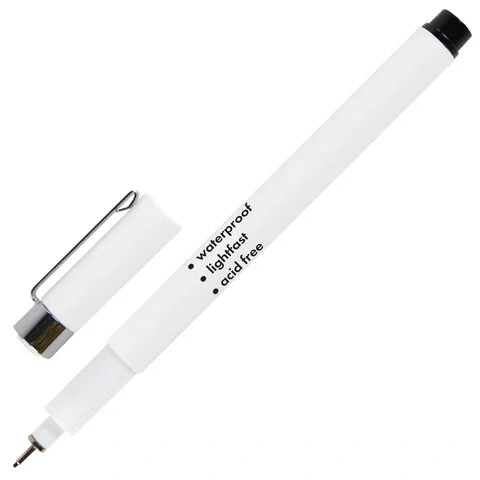 В наборе 3 черных капиллярных ручки с типом наконечника 'Линер': № 0.3, 0.4, 0.8. Номер ручки на колпачке соответствует толщине линии письма в миллиметрах. Изготовлены с применением высококачественных чернил и наконечников. Чернила на водной основе, без кислот. Отличаются высокой светостойкостью и устойчивостью к воздействию воды. Подходят для работы в различных художественных техниках, каллиграфии и леттеринга.