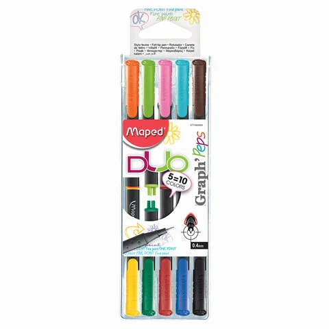 Набор ручек капиллярных Maped Graph Pep's 10 цветов, 5шт/уп, 0.4мм, корпус ассорти
