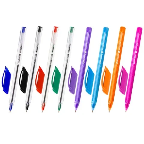 Шариковые ручки ассорти из 8 ярких цветов с трехгранным корпусом для удобного захвата. Уникальные чернила ультрапониженной вязкости и надежный пишущий узел обеспечивают непревзойденно мягкое и комфортное письмо. Диаметр пишущего узла 1 мм создает ровную линию письма, равную 0,5 мм. Цвета чернил в наборе: синий, черный, красный, зеленый, фиолетовый, голубой, оранжевый, розовый.