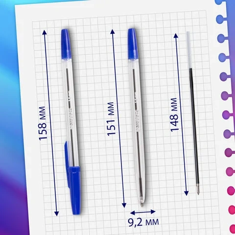 Шариковые ручки с прозрачным корпусом и деталями в цвет чернил. Сменный стержень длиной 152 мм. Диаметр пишущего узла 1 мм создает тонкую инию письма 0,5 мм. В наборе 4 ручки с синими чернилами. Лаконичный дизайн соответствует офисному стилю.