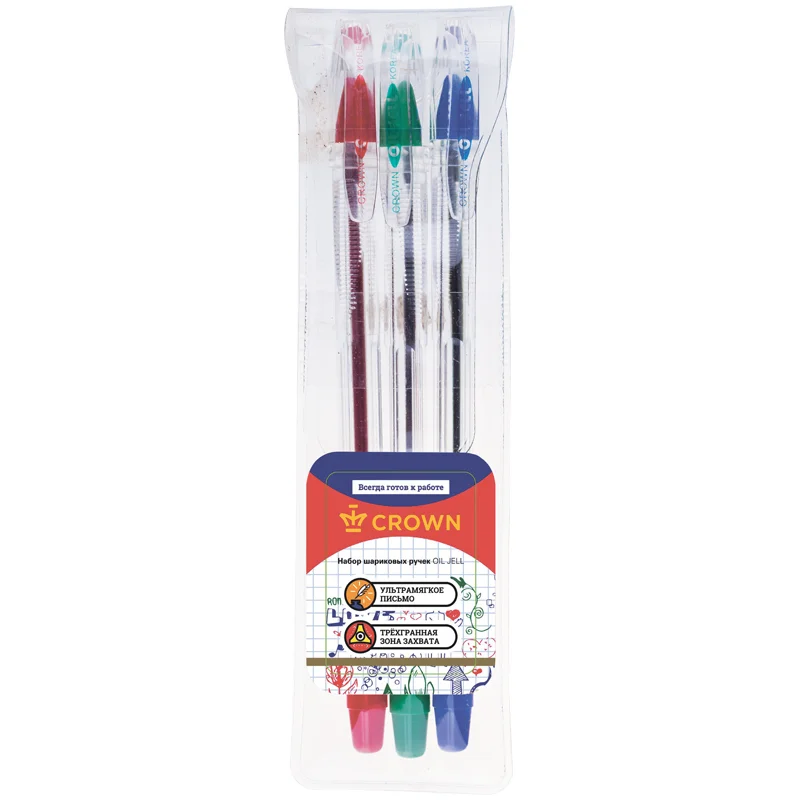 Набор шариковых ручек Crown 3 цвета, 0.5мм