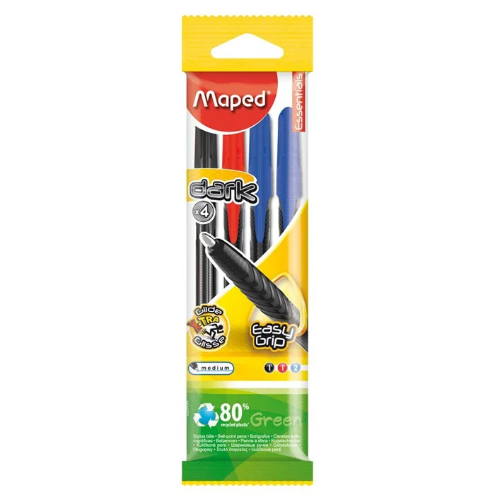 Набор шариковых ручек Maped Green Dark 3 цвета, 0.6мм, низкотекучие чернила, 4шт
