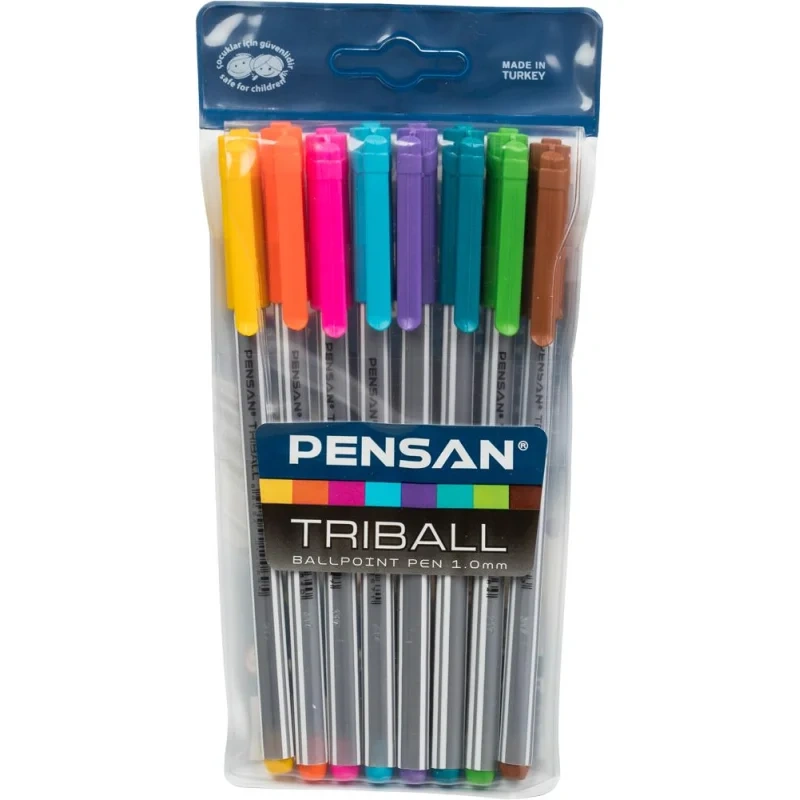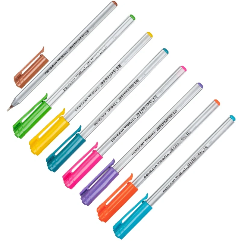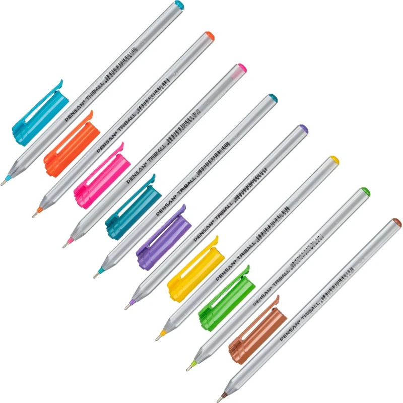 Набор шариковых ручек Pensan 8 цветов, 1мм, 8шт/уп, серебристый корпус