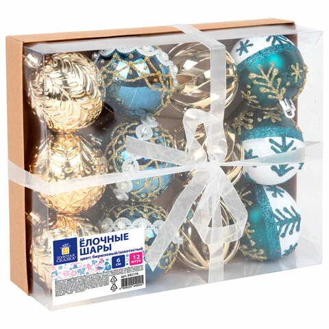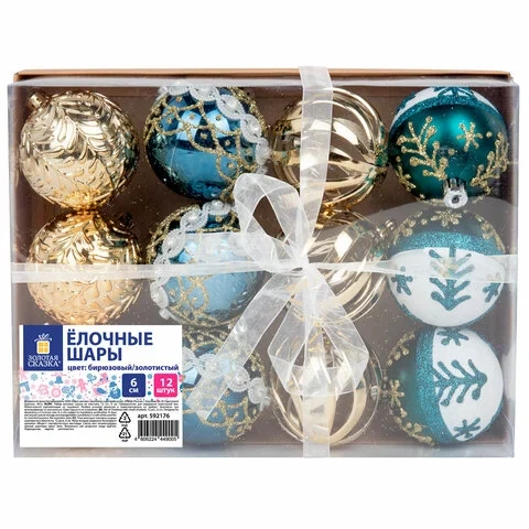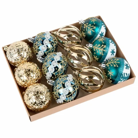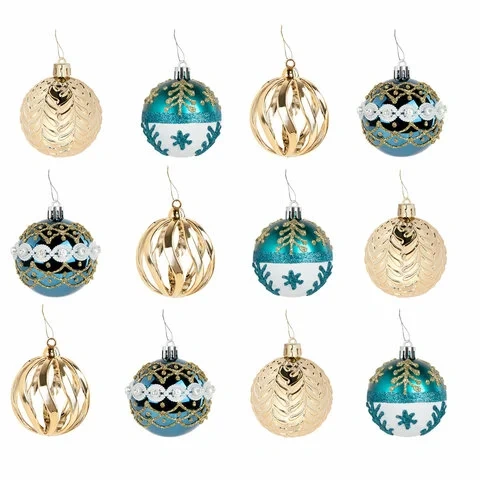 Набор шаров Золотая Сказка Frost Forest бирюзовый-золото, 12шт/уп, пластик
