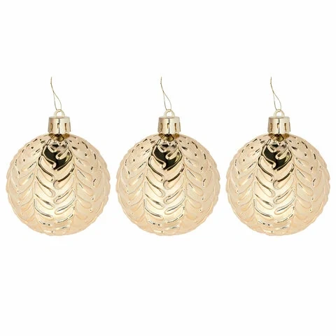 3 шара с объемным узором золотого цвета с глянцевым эффектом (диаметром 6 см),