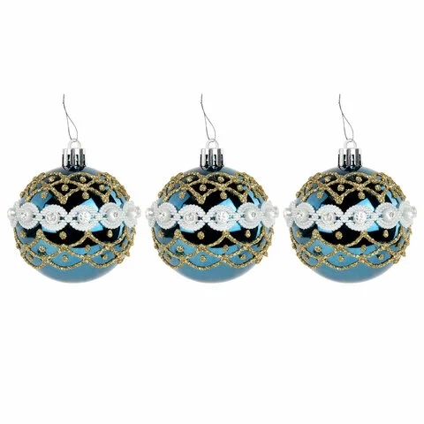 3 шара синего цвета с золотым рисунком с глянцевым эффектом (диаметром 6 см),