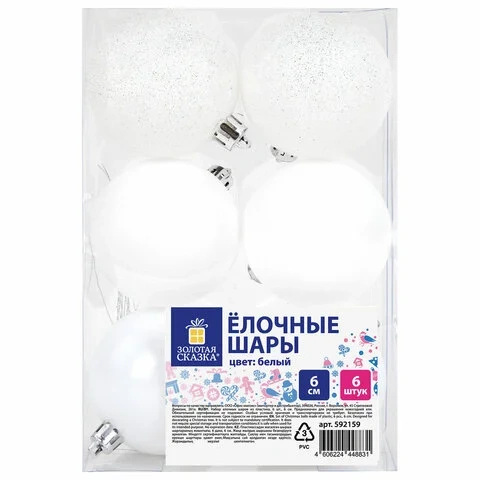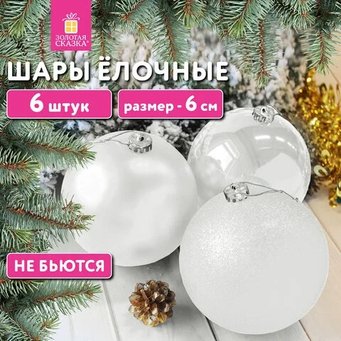 Набор шаров Золотая Сказка Trio белый, 6шт/уп, пластик