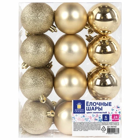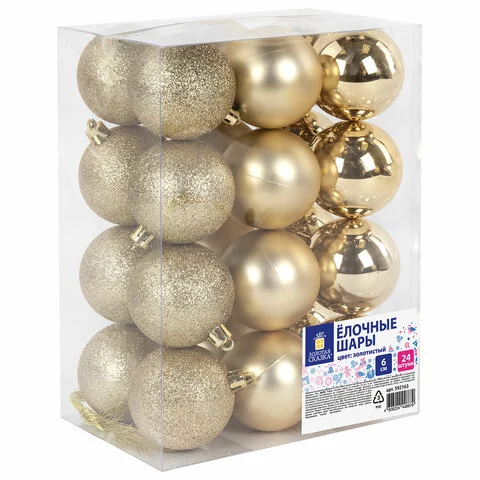 Набор шаров Золотая Сказка Trio золоистый, 24шт/уп, пластик
