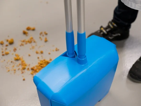 Собирайте и сухой, и влажный мусор одним плавным движением, при помощи наклонной щетки и совка-ловушки с ручкой.