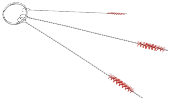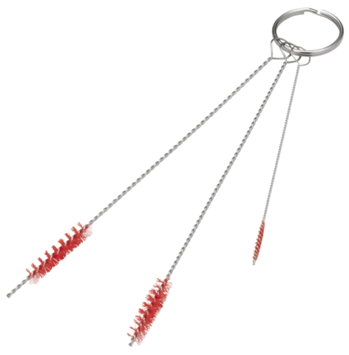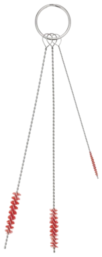 Набор щеток предназначен для чистки очень мелких деталей машин, имеющих цилиндрическую форму, вентилей, например, в машинах для приготовления кофе или сока.