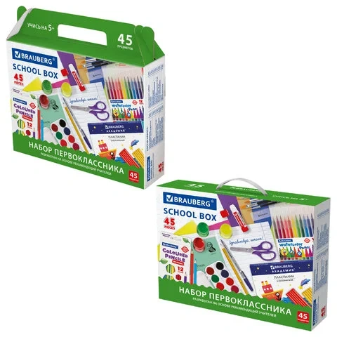 Набор школьных принадлежностей в подарочной коробке BRAUBERG 'НАБОР ПЕРВОКЛАССНИКА', 45 предметов, 8