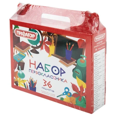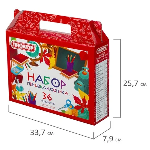Набор школьных принадлежностей в подарочной коробке ПИФАГОР 'НАБОР ПЕРВОКЛАССНИКА', 36 предметов, 88