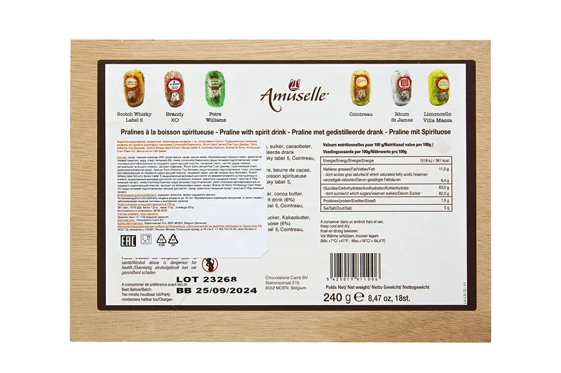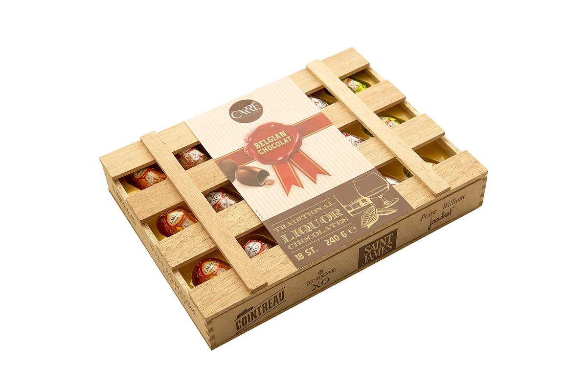 Превосходный подарок для настоящих ценителей стиля, изысканных сладостей и благородных алкогольных напитков. Невероятно вкусные конфеты созданы бельгийскими шоколатье по уникальной рецептуре из темного шоколада c начинками из всеми известных оригинальных ликеров, рома, виски и бренди. Конфеты упакованы в подарочную деревянную коробку. Ассорти различных форм подходит в качестве презента друзьям и коллегам или в дополнение к подарку второй половине.