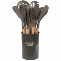 Набор силиконовых кухонных принадлежностей с деревянными ручками 12 в 1, серо-коричневый, DASWERK, 6