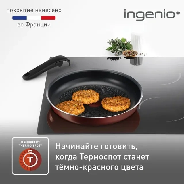 Набор посуды Tefal Ingenio Brown Handle прекрасно подойдет для совершенствования вашего кулинарного мастерства. Внутреннее антипригарное покрытие PowerGlide обеспечивает отличные антипригарные свойства и повышенную износостойкость даже при длительном ежедневном использовании. Уникальный индикатор температуры Thermo-Spot вовремя подскажет, когда посуда достигла оптимальной для приготовления температуры. Весь набор управляется всего одной съемной ручкой Ingenio 3, с помощью которой вы легко сможете готовить в нескольких сковородах одновременно, а после – сложить их по принципу матрешки для компактного хранения. Посуда подходит для всех типов плит, кроме индукционных.