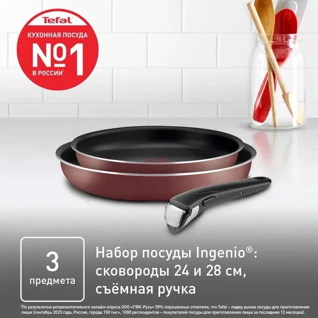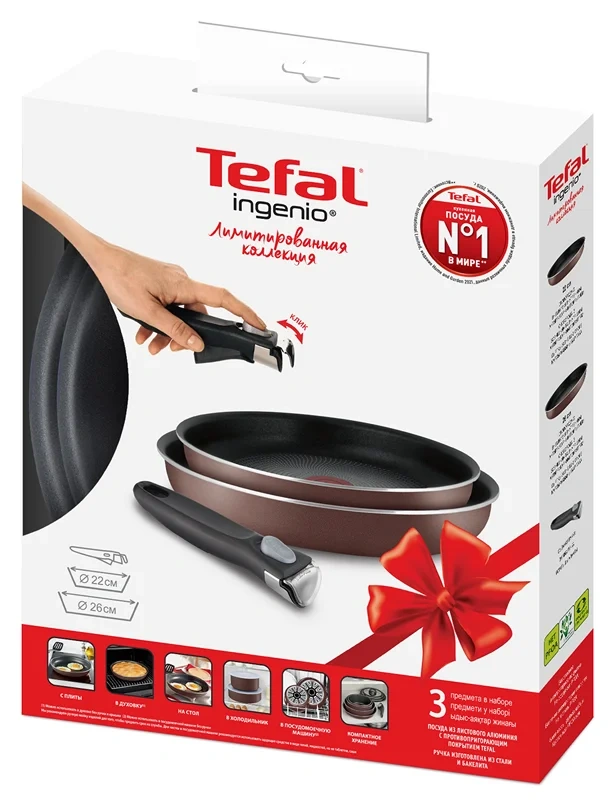 Набор сковород Tefal Ingenio Brown Handle Сковорода 22см + сковорода 26см + ручка