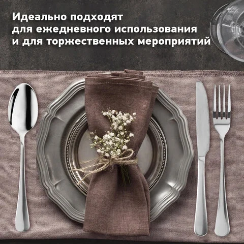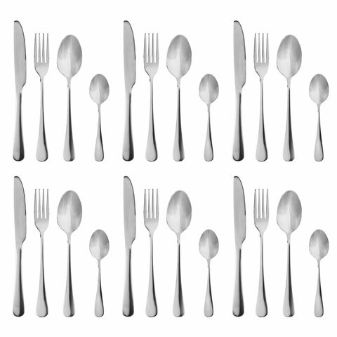В набор входят 6 столовых ложек, 6 вилок, 6 ножей и 6 чайных ложек, что позволяет использовать приборы для употребления разных блюд.