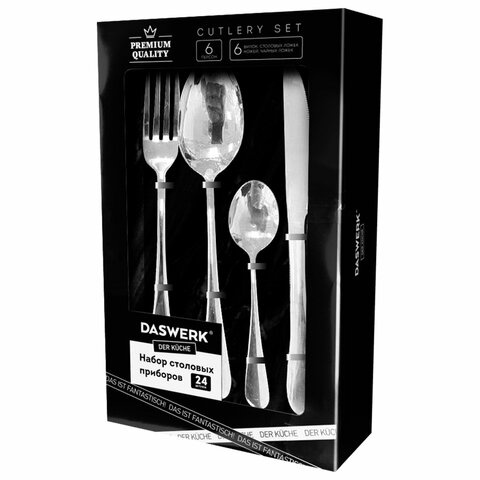 Набор столовых приборов DASWERK из 24 предметов предназначен для сервировки стола на 6 персон.