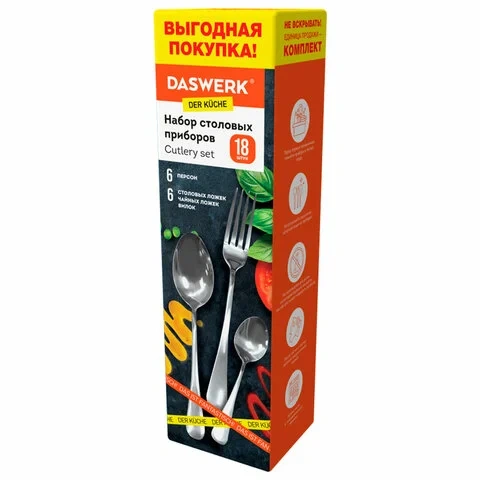 Набор столовых приборов DASWERK из 18 предметов предназначен для сервировки стола на 6 персон.