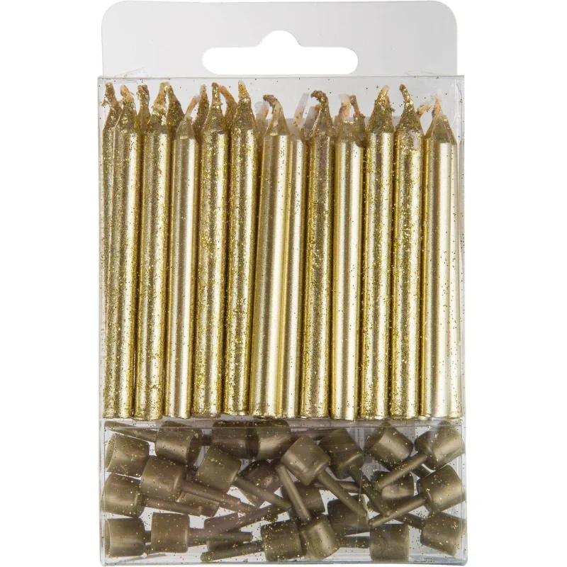 Набор свечей Золотых с блестками 24(12+12)шт/уп с держателя 6см арт.6050528