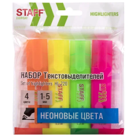 Набор текстовыделителей 4 НЕОНОВЫХ ЦВЕТА, STAFF 'EVERYDAY HL-720', линия 1-5 мм, скошенный наконечни