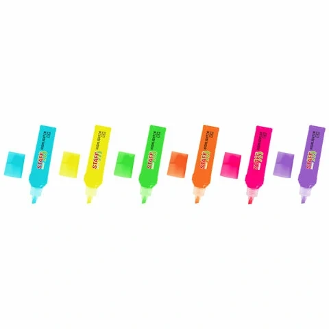 Набор текстовыделителей 6 НЕОНОВЫХ ЦВЕТОВ, STAFF 'EVERYDAY HL-707', линия 1-5 мм, скошенный наконечн