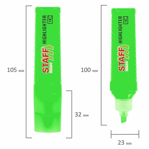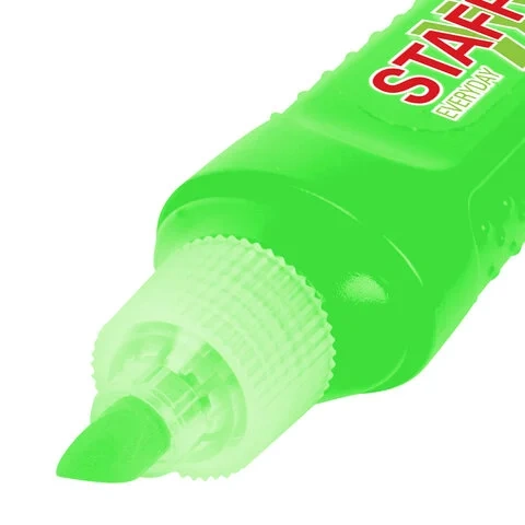 Прямоугольный корпус диаметром 24 мм оснащен удобной зоной захвата. Скошенный наконечник имеет толщину линии письма от 1 до 5 мм, что обеспечивает удобство при работе с текстом, напечатанным мелким шрифтом, или таблицами. Светоустойчивые чернила на водной основе не выцветают даже на открытом солнце, быстро впитываются и не размазываются в процессе использования.