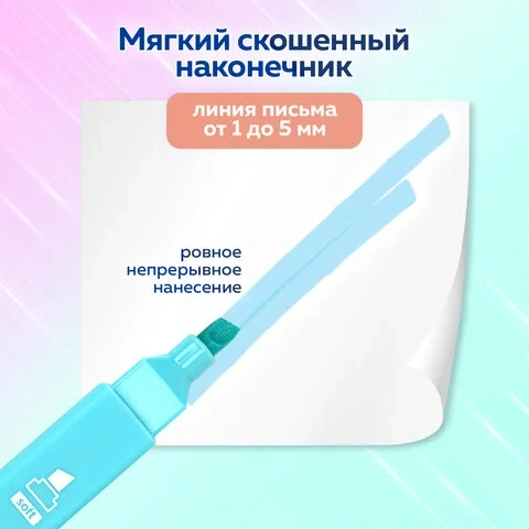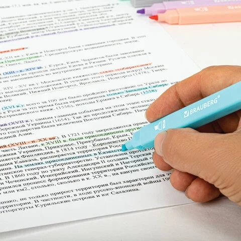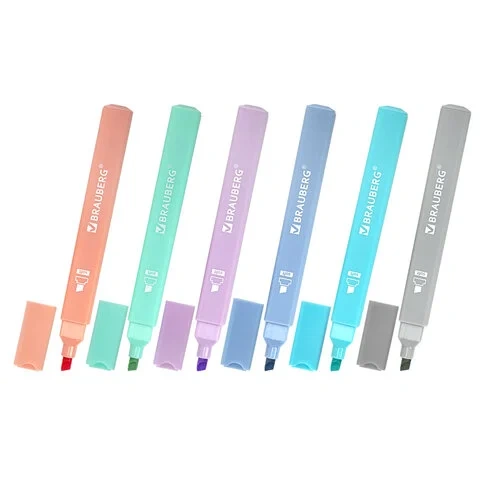Набор текстовыделителей Brauberg 6 пастельных цветов, 1-5 мм, скошенный наконечник