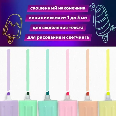 Набор текстовыделителей Юнландия 6 пастельных цветов, 1-5 мм, скошенный наконечник
