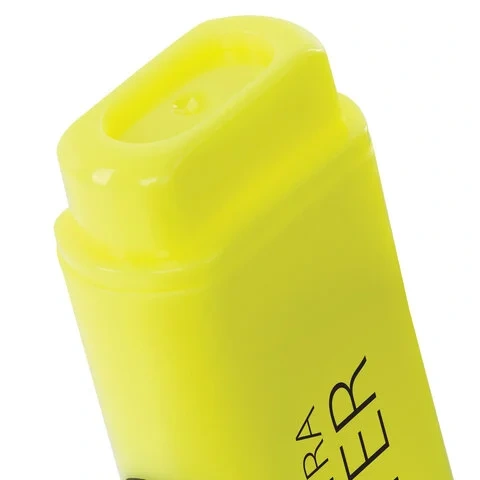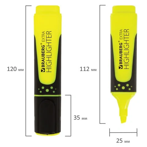Плоская форма корпуса диаметром 25 мм. Цвет корпуса соответствует цвету чернил. Резиновые вставки обеспечивают эргономичную зону захвата, предотвращая скольжение в процессе использования. Скошенный наконечник имеет толщину линии письма от 1 до 5 мм, что обеспечивает удобство при работе с мелким шрифтом или таблицами.
