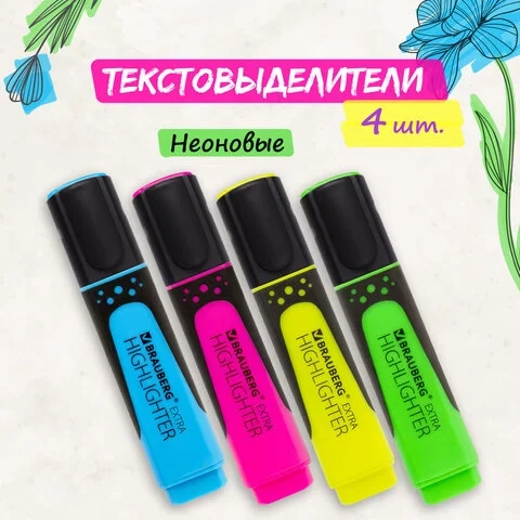 Отзывы о «Набор текстовыделителей BRAUBERG 4 шт., АССОРТИ, 'SUPER', прорезиненный корпус, линия 1-5 мм, 151746»