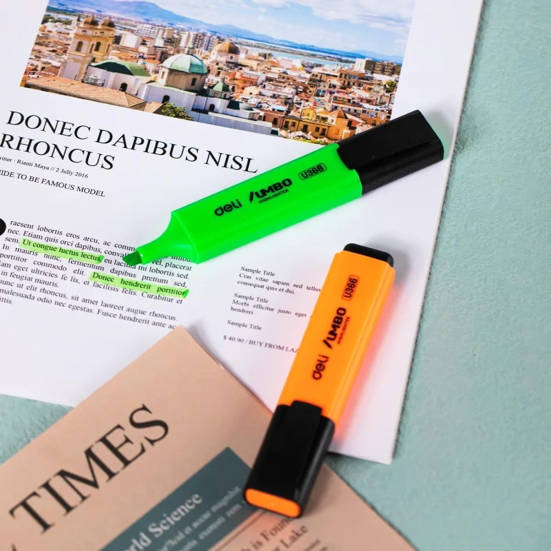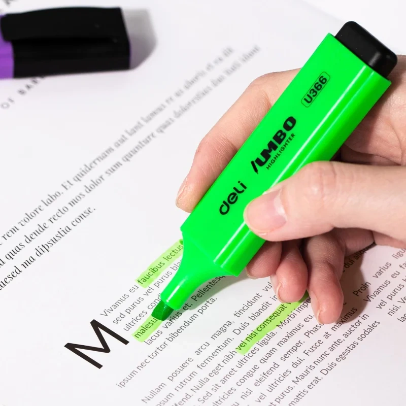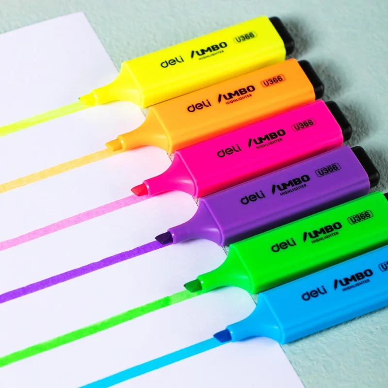 Набор текстовыделителей Deli Jumbo предназначен для маркировки текста на всех типах бумаги. Идеальный выбор для заметок в журнале, скрапбукинга и прочих творческих идей. Текстовыделители — это незаменимые школьные принадлежности.