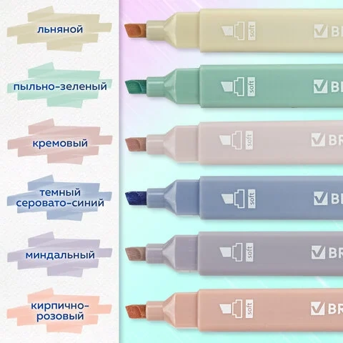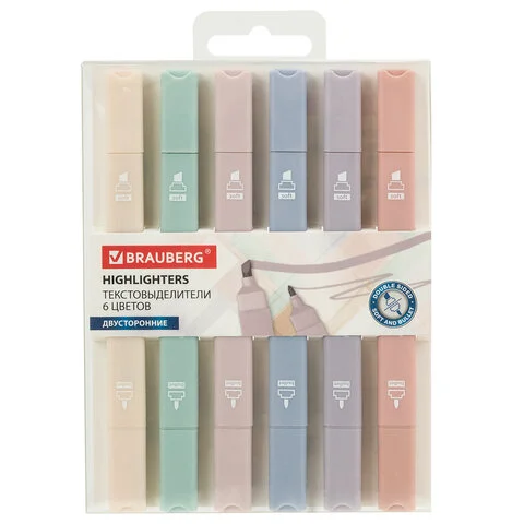 Набор текстовыделителей Brauberg Morandi 6 цветов моранди, 1-5 мм, скошенный наконечник