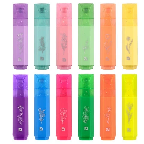 Благодаря особой водной основе чернил текстовыделители не высыхают без колпачка в течение 8 часов. Текстовыделители обладают экономным расходом чернил, при этом длина линии письма достигает 300 метров. Чернила быстро впитываются и тем самым предотвращают размазывание в процессе использования. Цвет колпачка и корпуса соответствует цвету чернил. Необычный колпак с блестками отлично дополняется утончЕнными рисунками.