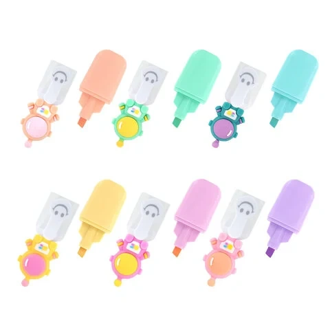 В наборе 6 пастельных цветов: лавандовый, персиковый, ванильный, бирюзовый, пастельный розовый и мятный. Нежные пастельные цвета позволяют создать мягкие переходы и равномерно подчеркнуть необходимую информацию в тексте. Цвет корпуса текстовыделителя соответствует цвету чернил.