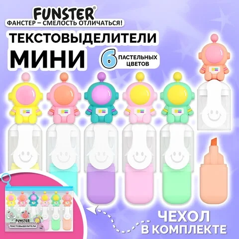 Набор текстовыделителей с топперами 6 ЦВЕТОВ ПАСТЕЛЬ, 'КОСМО', линия 1-4 мм, FUNSTER (ФАНСТЕР), 1526